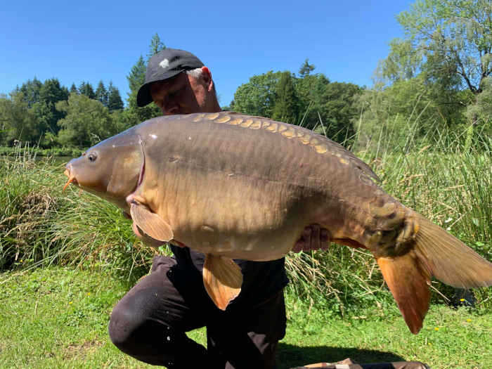 There are 103 carp, a mixture of commons and mirrors. The lake record stands at 68.04 and there are approx 15 fish in excess of 50 pounds and 4 in excess of 60 pounds with a very high lake average of over 40 pounds.